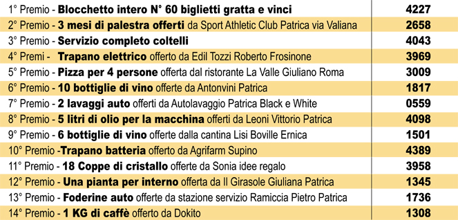 Per ritirare i premi chiamare il numero 349.1096012